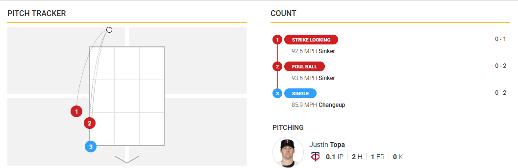 Pitch Location DataPitch location data is available within Game Play-by-Play. When combined with Game Pitch Metrics, you can render advanced pitch tracking visuals, including plotted pitch locations and pitch sequence overlays.