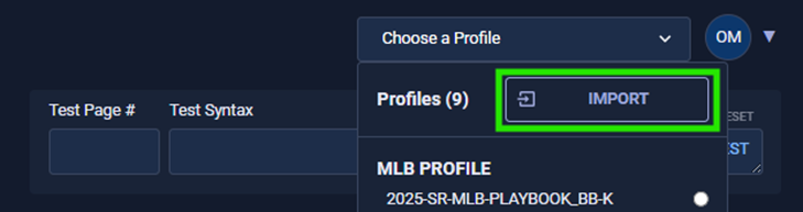 There are two ways to import OnAir profiles, using either a .sr file or Share ID. To begin the import process, click the drop-down in the upper right corner of OnAir that displays the name of the profile currently loaded, then click Import. You will have the option to import a full profile, or only individual parts of a profile if you prefer.
