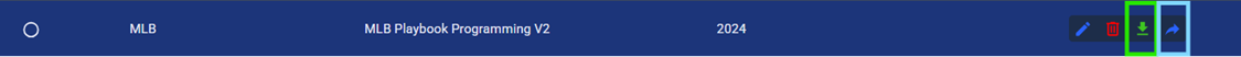There are two ways to export and share OnAir profiles. You can export a .sr file by clicking the green downward-facing arrow, or you can generate a profile Share ID by clicking the right-facing blue arrow.