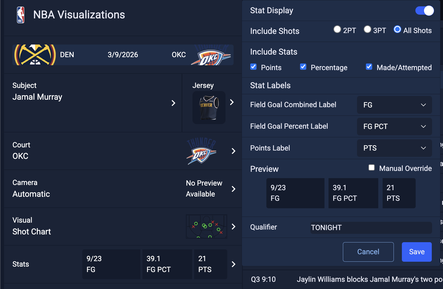 - Include only 2PT shots, only 3PT shots, or all FGs (this is the same control as the dropdown in Step 7)